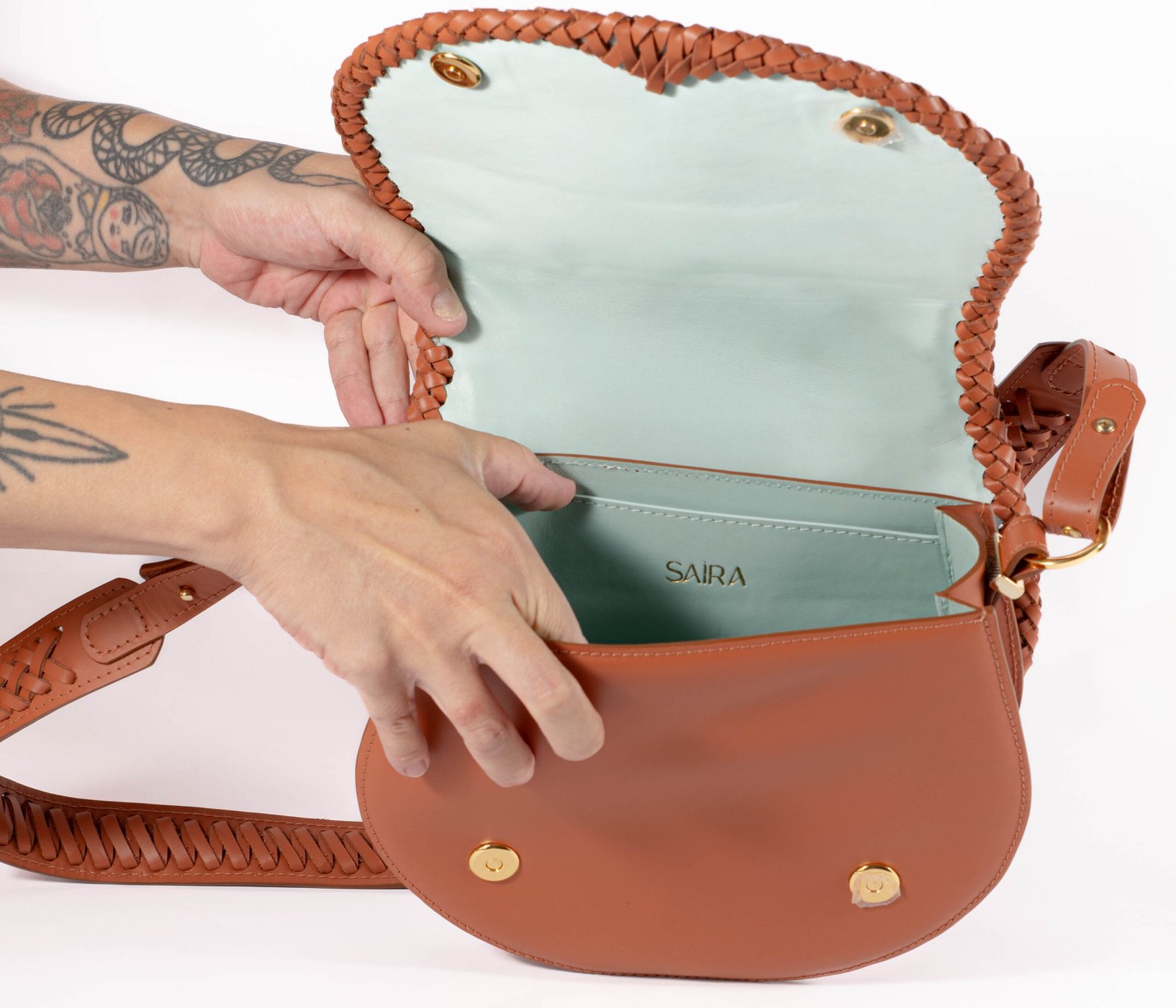 Um dos elementos mais cativantes desta bolsa é sua alça com trançados de selaria. Esse detalhe especial adiciona um toque único e cheio de charme, elevando o nível de sofisticação de qualquer look.